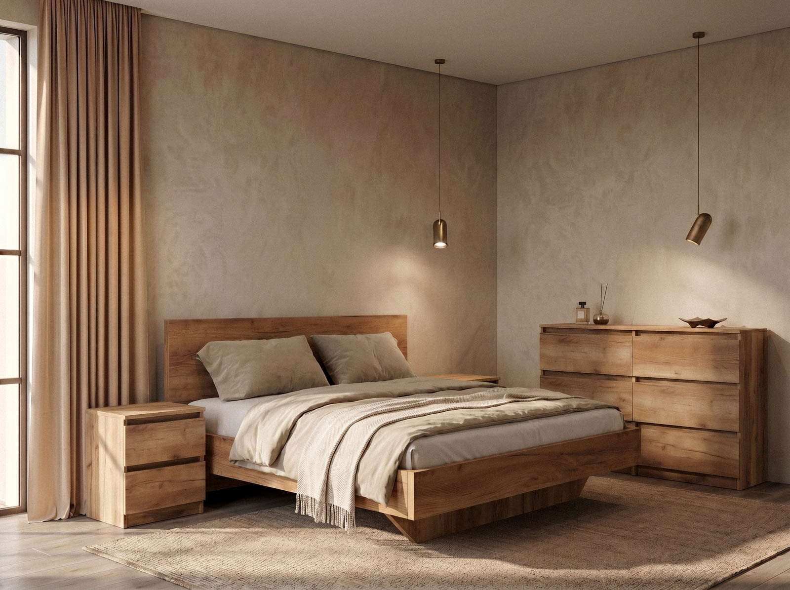 Minimalistyczna forma, prosta bryła oraz brak uchwytów nadają meblowi elegancki i nowoczesny charakter. Komoda nowoczesna Fabio inspirowana jest aktualnymi trendami wnętrzarskimi, a jej uniwersalny wygląd sprawia, że z łatwością dopasujesz ją do różnych aranżacji – od stylu skandynawskiego po loftowy. Naturalny dekor drewna dodatkowo ociepla przestrzeń i nadaje jej przytulności.