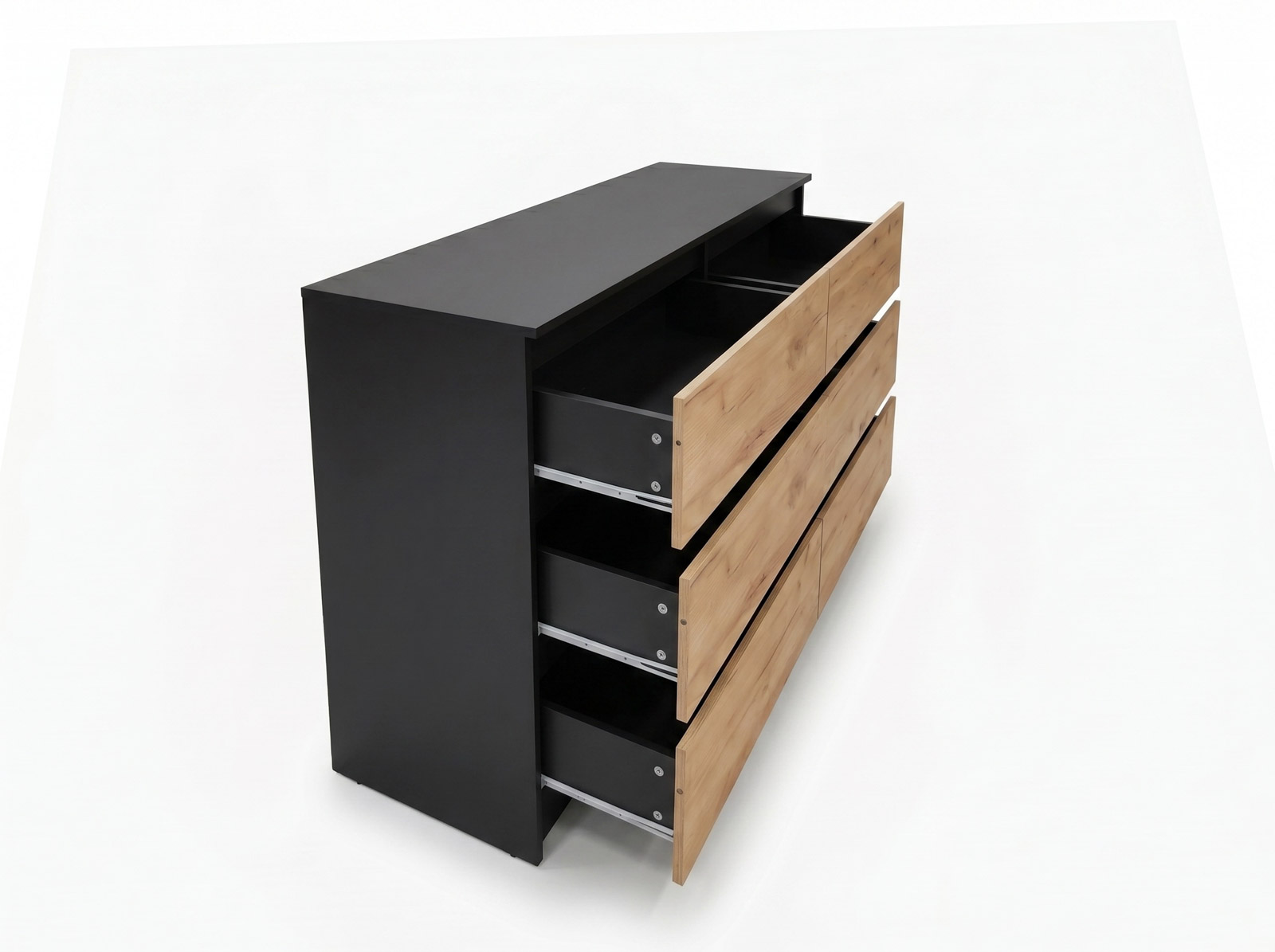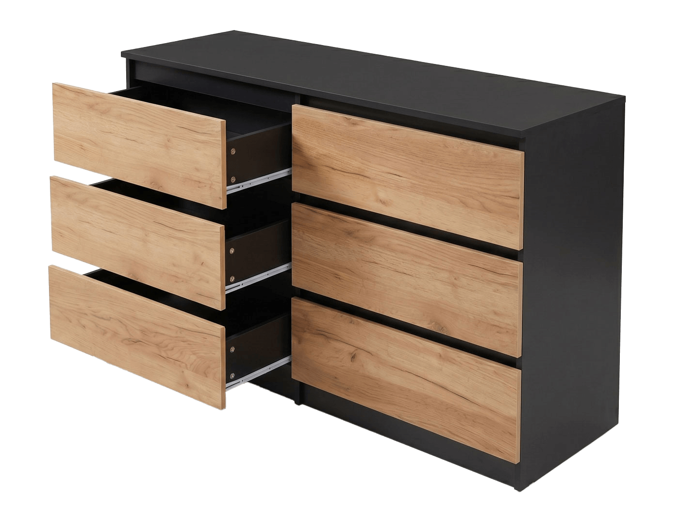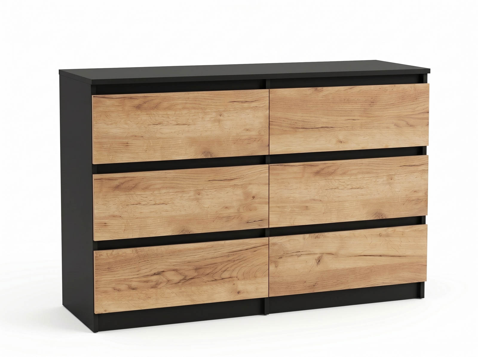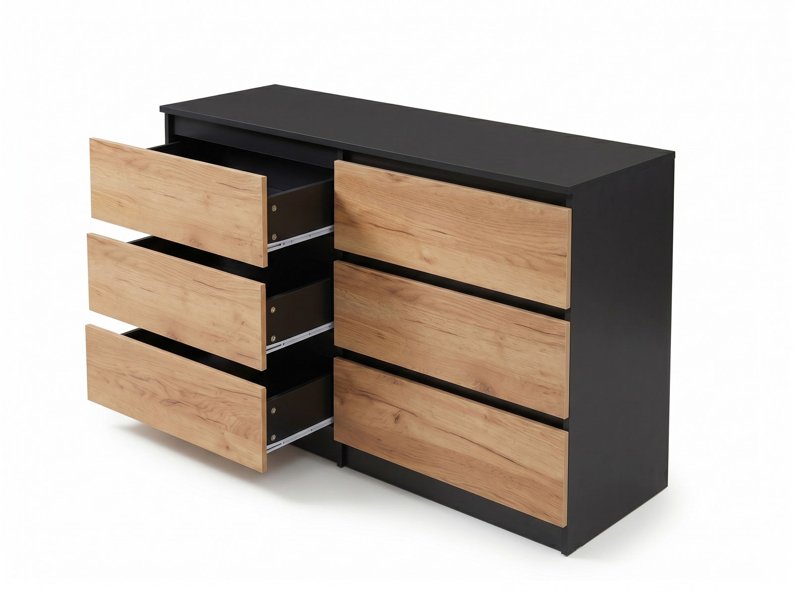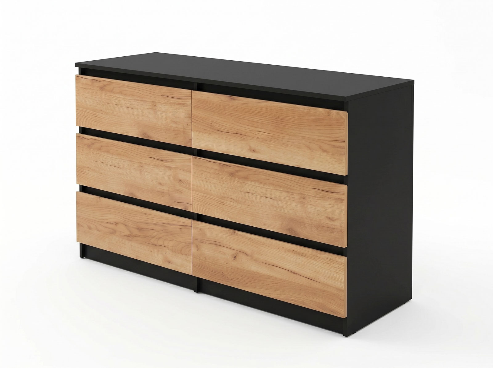 Komoda z płyty meblowej 6S 120x77 cm Fabio Czarna + Craft