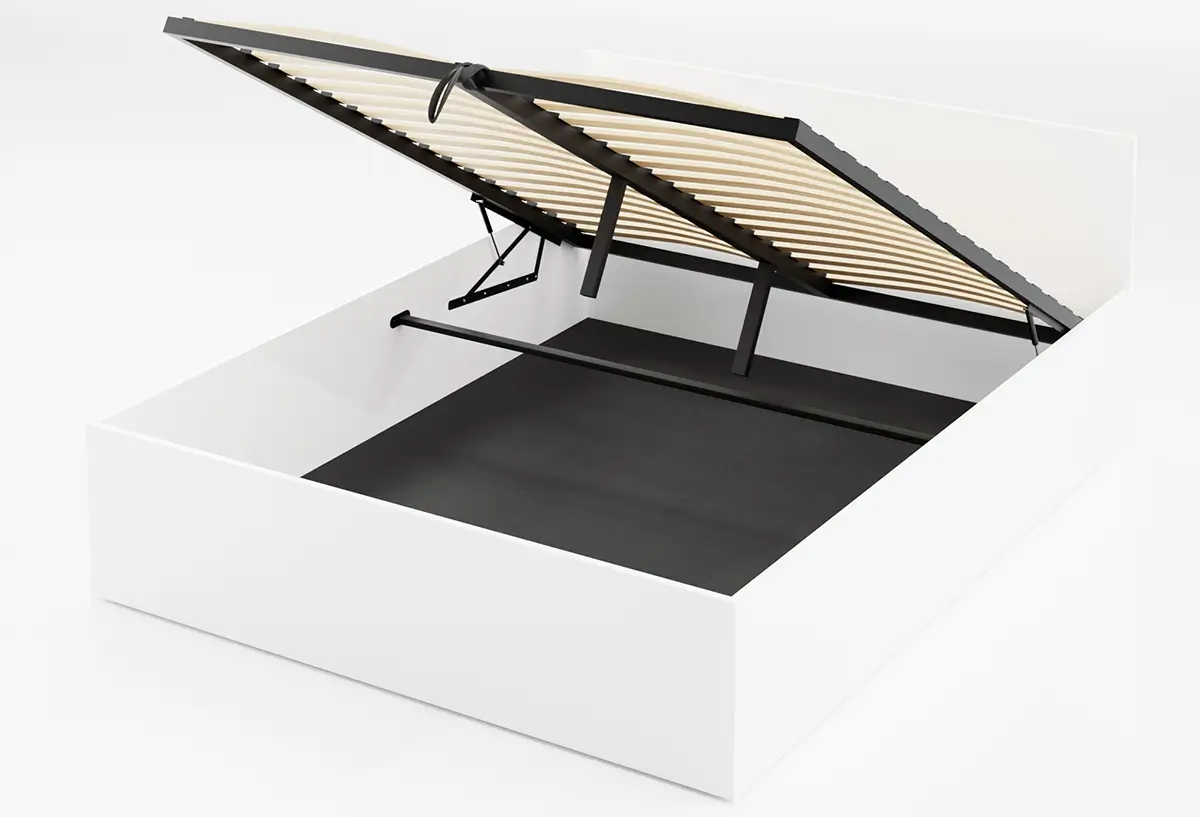 Łóżko DM1 160x200 Białe ze stelażem metalowym podnoszonym i pojemnikiem