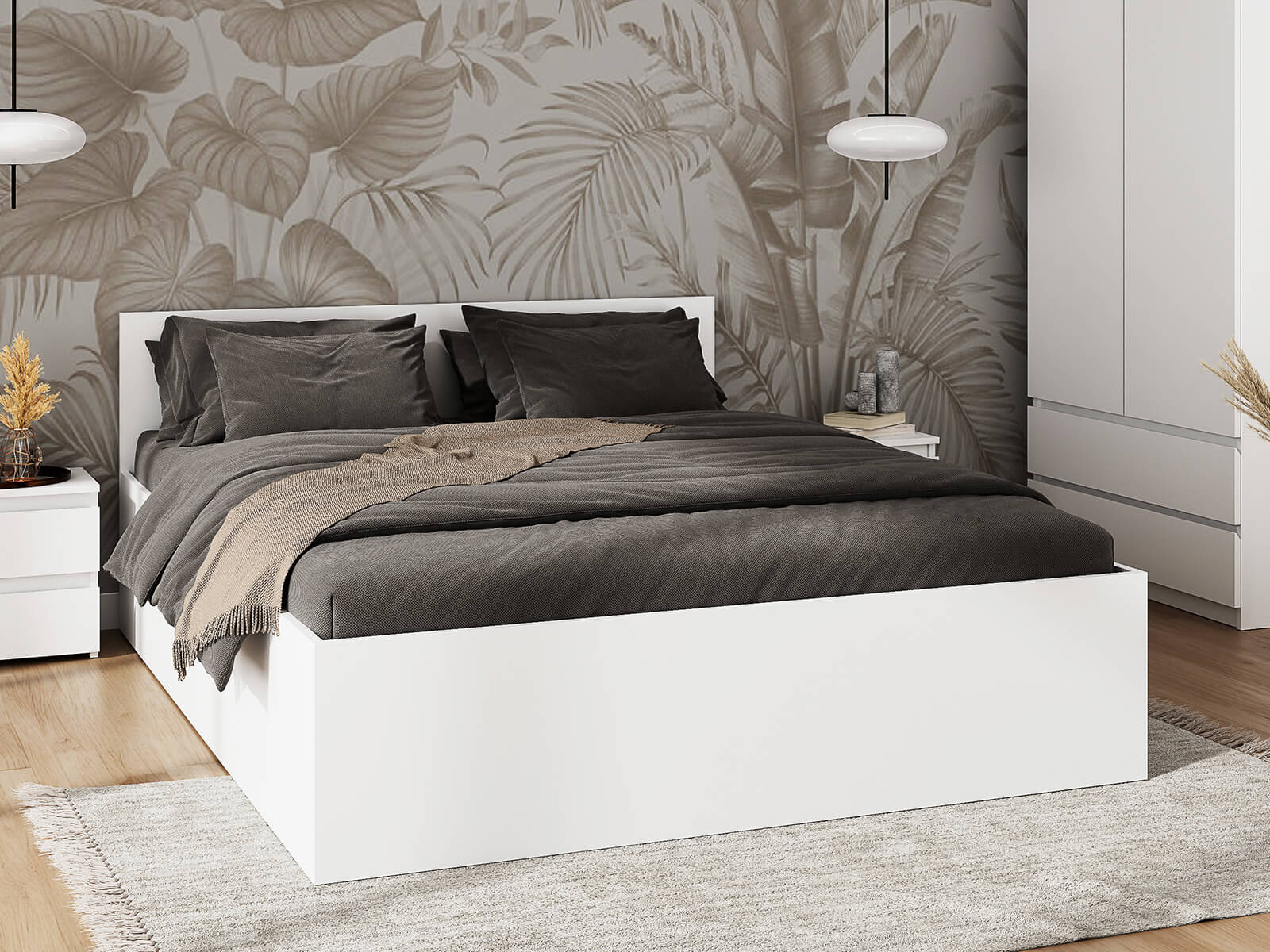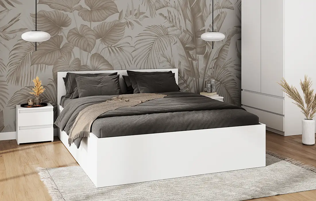 Łatwy montaż: Mebel jest dostarczany w paczkach do samodzielnego montażu, z jasnymi instrukcjami, które pozwalają na szybkie i łatwe złożenie łóżka.