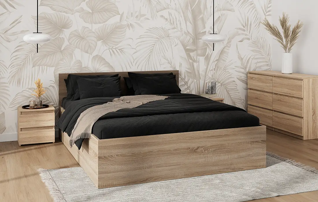 Zobacz opis produktuŁóżko DM1 w kolorze dąb sonoma to nowoczesny i funkcjonalny mebel wykonany z trwałej płyty meblowej, charakteryzujący się prostą, minimalistyczną formą. Jasny odcień wprowadza do wnętrza nowoczesny i stylowy charakter, idealnie komponując się z różnorodnymi stylami aranżacji. Wytrzymała i bezpieczna konstrukcja oraz wygodne wezgłowie zapewniają komfort użytkowania, a uniwersalny design sprawia, że łóżko doskonale sprawdzi się w sypialni, pokoju młodzieżowym czy gościnnym. To praktyczne rozwiązanie dla osób ceniących połączenie estetyki i trwałości. Dodatkowo, kompaktowy rozmiar łóżka czyni je idealnym wyborem do mniejszych przestrzeni, bez utraty funkcjonalności. Stabilność konstrukcji oraz precyzyjne wykonanie zapewniają bezpieczeństwo, nawet przy intensywnym użytkowaniu. Naturalna, drewnopodobna powierzchnia jest nie tylko estetyczna, ale również łatwa w pielęgnacji, co pozwala na utrzymanie mebla w doskonałym stanie przez długi czas. Łóżko DM1 to połączenie klasycznej elegancji z nowoczesnym podejściem do komfortu i praktyczności.