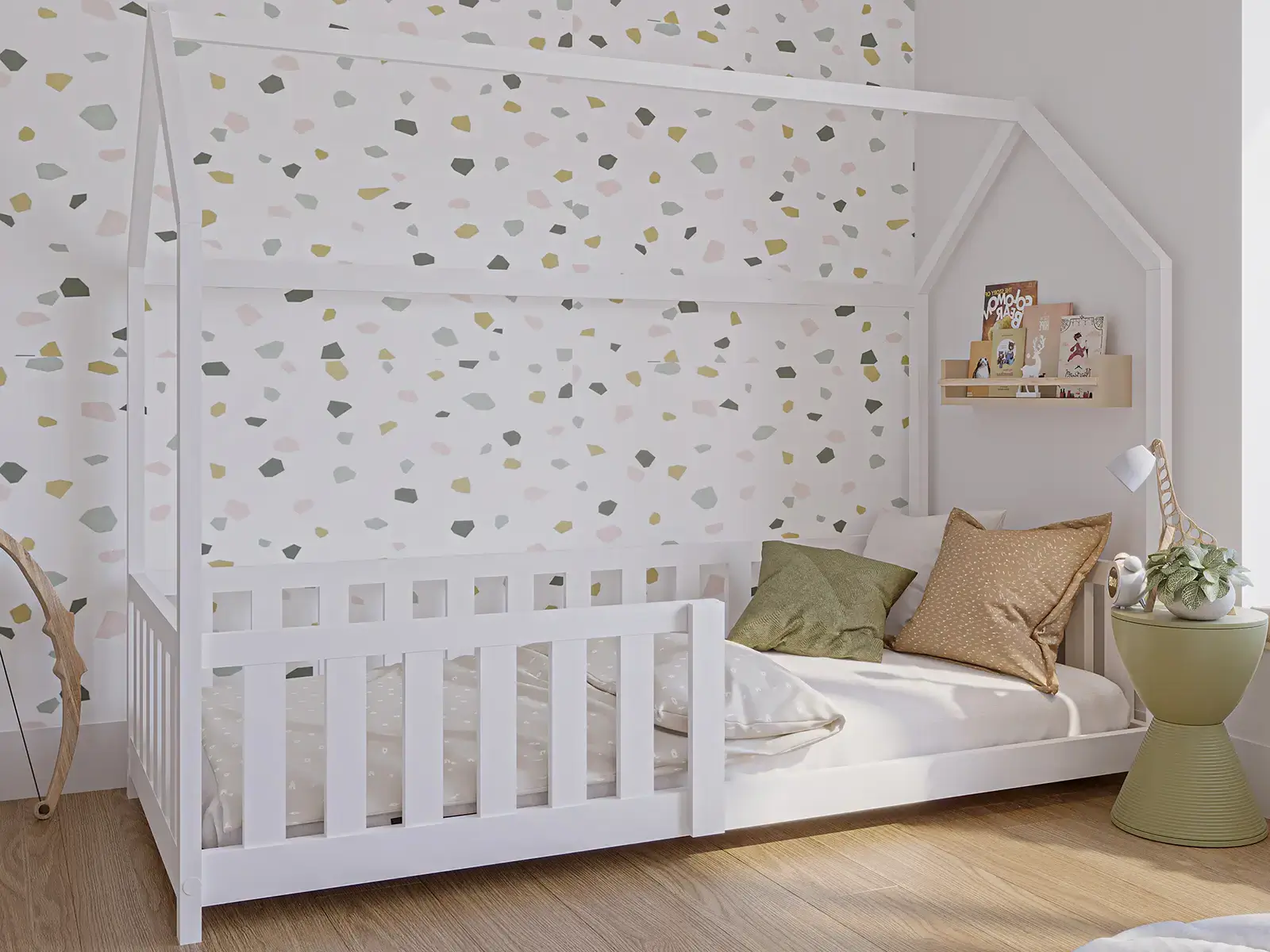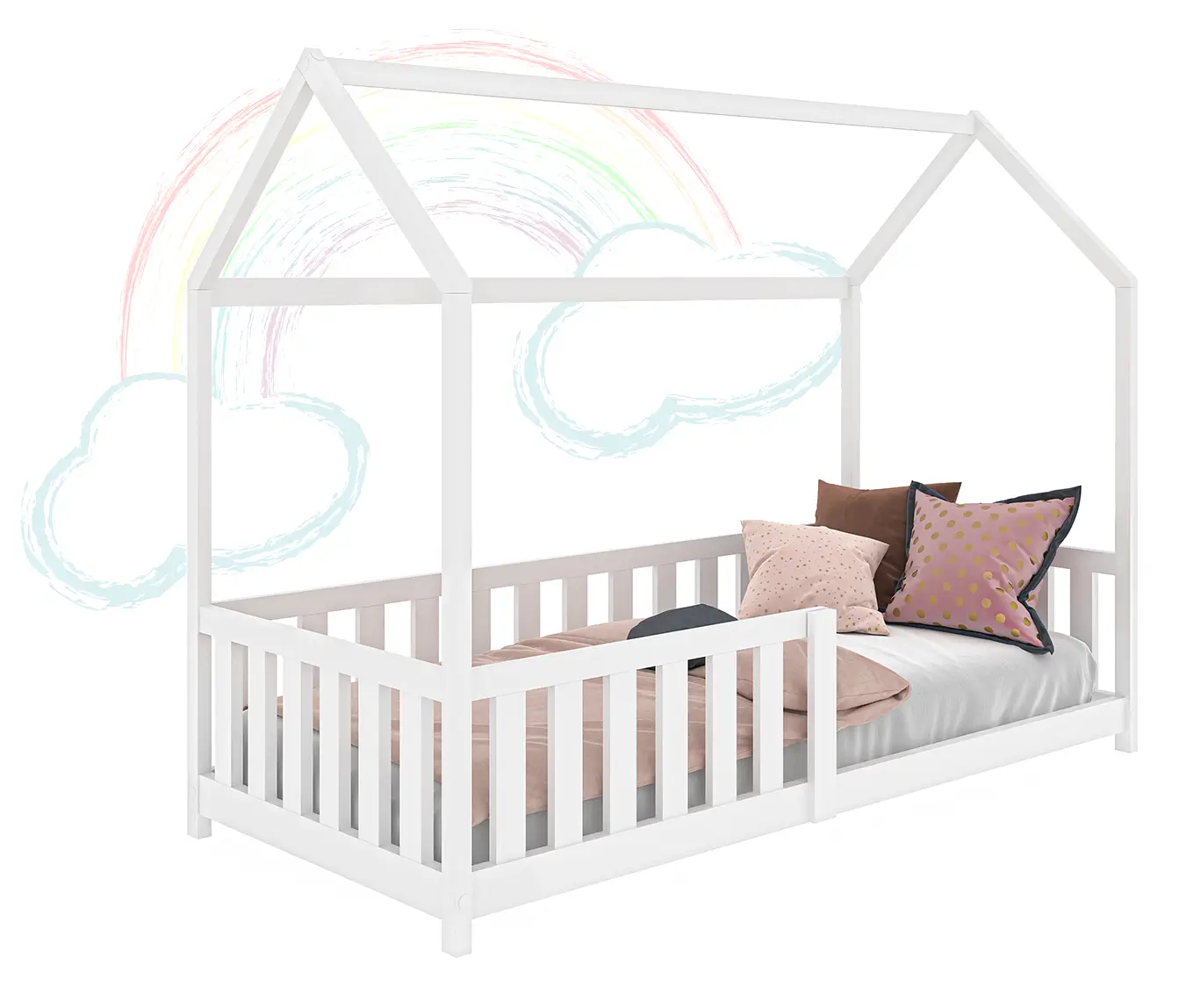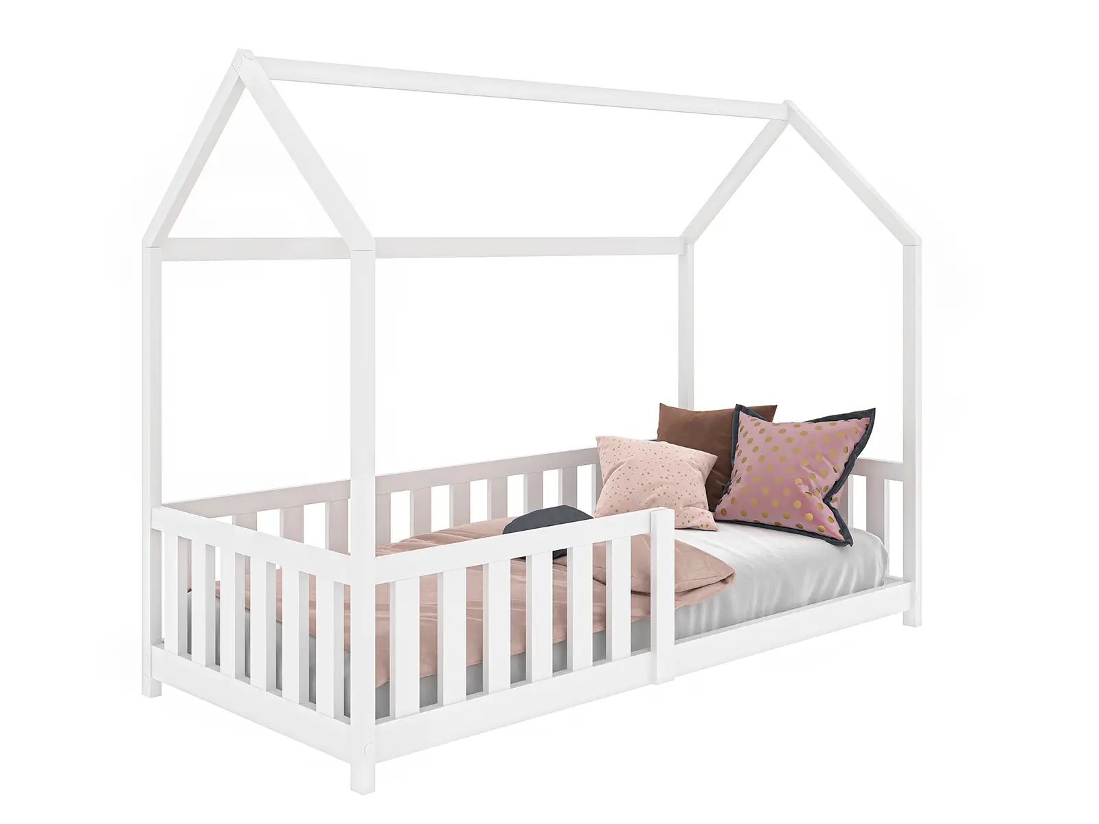 Łóżko dziecięce Domek 80x160 z barierką i stelażem kolor biały D7