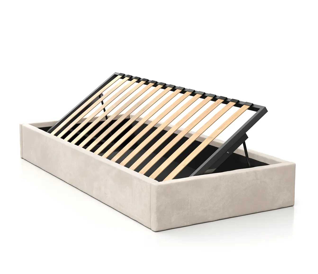 Funkcjonalne Przechowywanie – Model ten posiada boczny pojemnik na pościel z łatwym dostępem dzięki gazowym podnośnikom o udźwigu 40 kg. Otwieranie jest płynne i bez wysiłku, co stanowi świetne rozwiązanie dla tych, którzy cenią sobie porządek i dodatkową przestrzeń na przechowywanie nie tylko pościeli, ale i innych przedmiotów, takich jak zabawki.