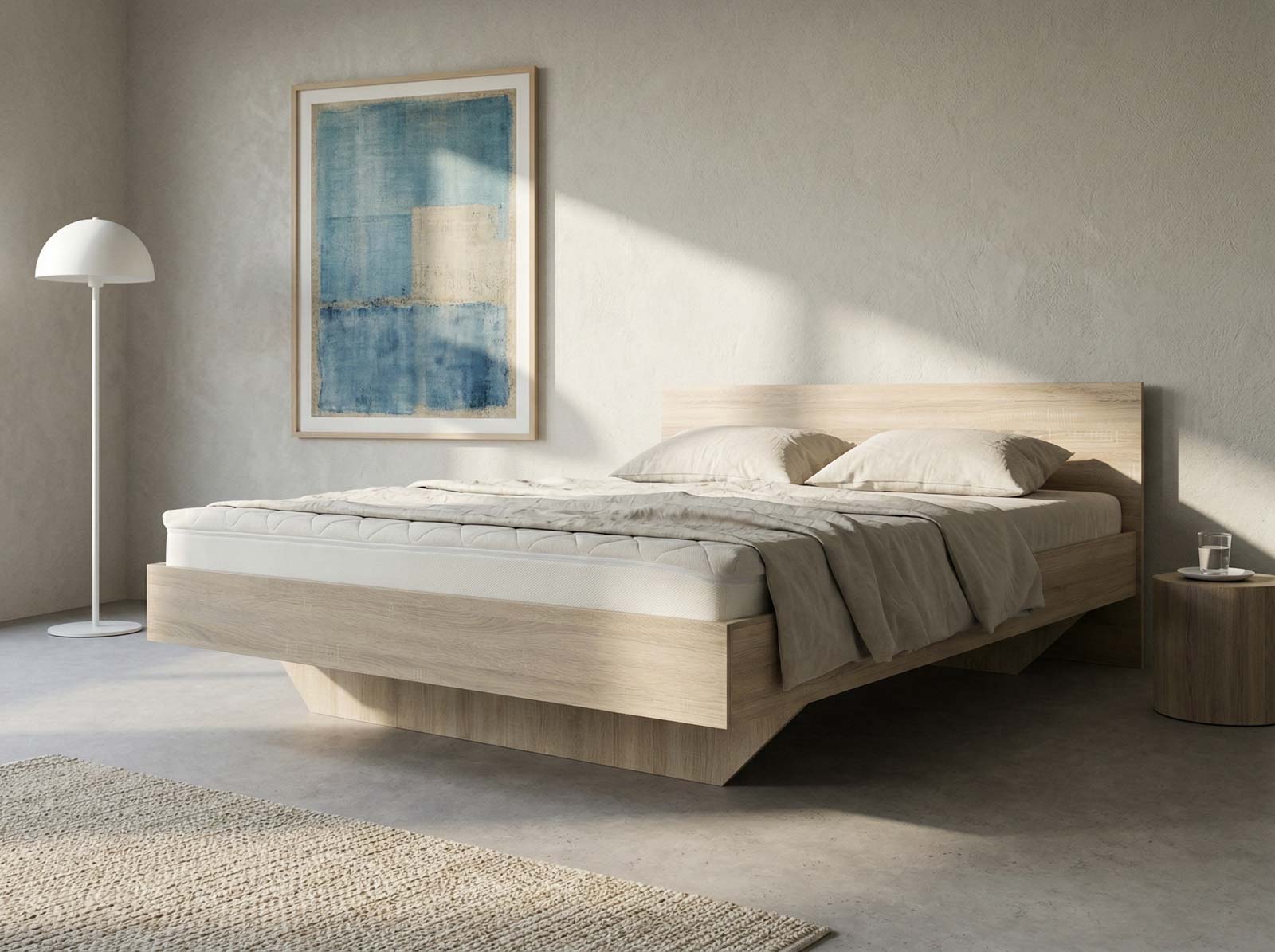 Efekt lewitacji: Jednym z najbardziej unikalnych elementów łóżka DM2 jest jego konstrukcja imitująca efekt "lewitacji". Dzięki odpowiedniemu rozmieszczeniu podstawy, mebel sprawia wrażenie unoszenia się nad podłogą, co nadaje wnętrzu lekkości i wizualnej przestronności.