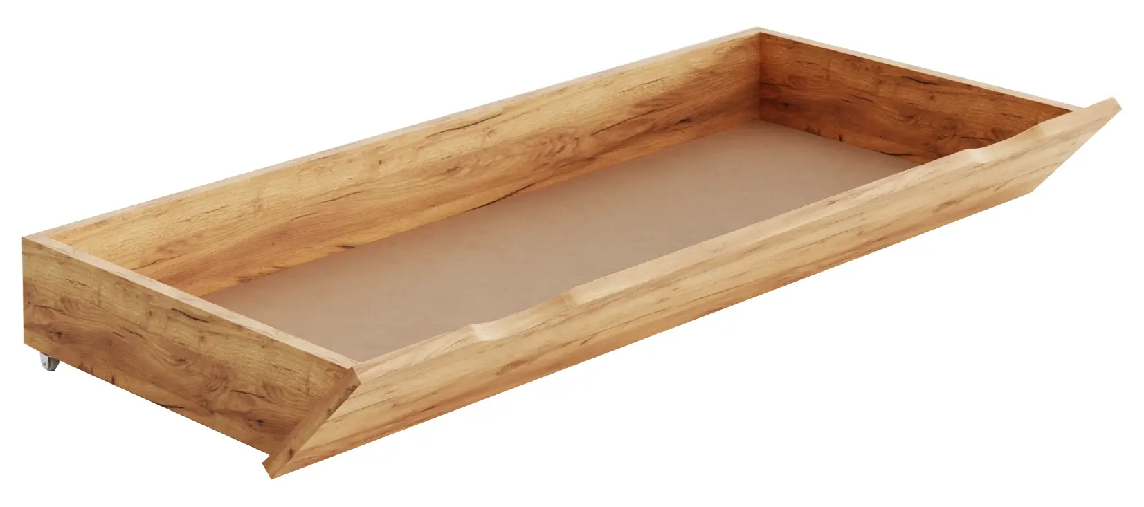 Szuflada do łóżek lewitujących DM2 to praktyczny wariant dodatkowy, który znacząco zwiększa funkcjonalność mebla. Umieszczona pod łóżkiem, zapewnia dyskretne i wygodne miejsce do przechowywania pościeli, ubrań lub innych przedmiotów. Jej wymiary to: wysokość boków 14 cm plus 2,2 cm kółka, front o długości 144,1 cm, a głębokość boków to 64 cm u góry i 50 cm u dołu. Dzięki estetycznemu wykończeniu idealnie komponuje się z nowoczesnym designem łóżka, nie zaburzając jego minimalistycznej formy. To doskonałe rozwiązanie dla osób ceniących porządek i oszczędność przestrzeni w sypialni.