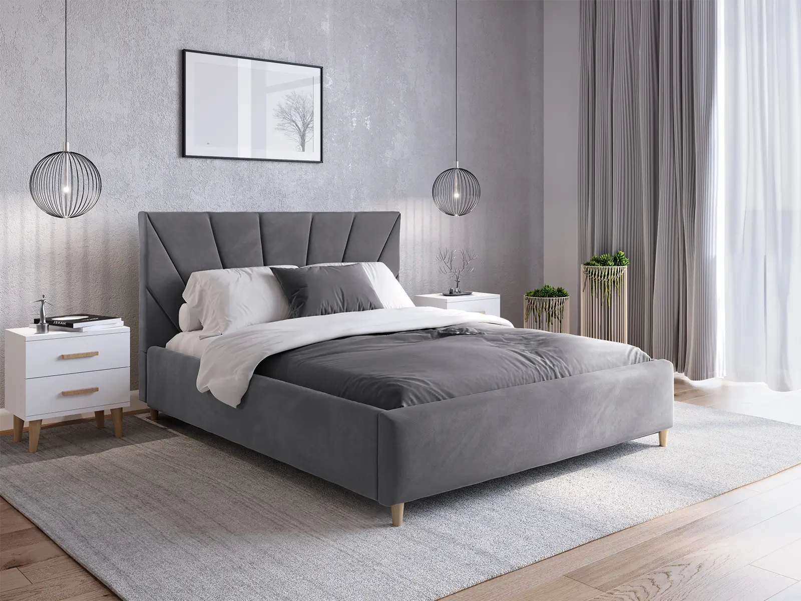 Marzysz o doskonałym łóżku, które nie tylko zapewni Ci niezrównany komfort snu, ale także ozdobi Twoją sypialnię swoim wyjątkowym designem? Prezentujemy Łóżko Tapicerowane Scandi Line 3 Velvet Grafitowe - połączenie stylu skandynawskiego z nowoczesnością.