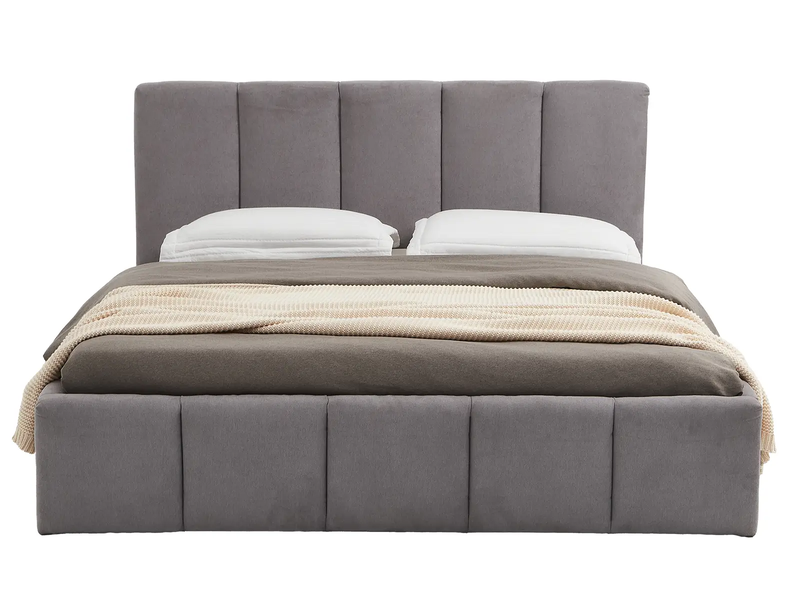 Wbudowany stelaż na podnośnikach gazowych o mocy 80 N z pojemnikiem na pościel sprawia, że utrzymanie porządku w sypialni staje się łatwe i efektywne.