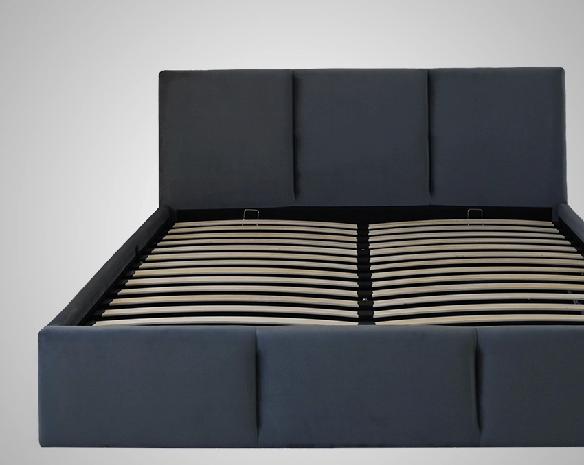 Jednym z kluczowych elementów naszego łóżka jest wysokiej jakości tkanina obiciowa welurowa w kolorze grafitowym. To nie tylko miła w dotyku tkanina, ale także wyjątkowo trwała i łatwa w utrzymaniu czystości. Dodaje ona łóżku elegancji i luksusowego charakteru.
