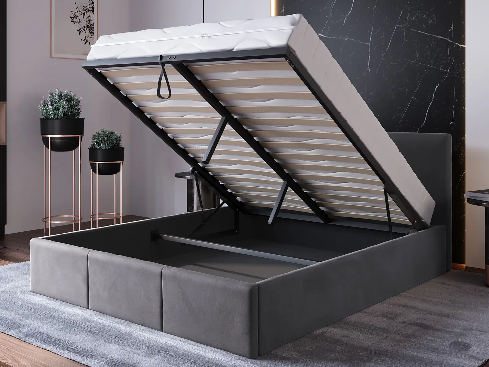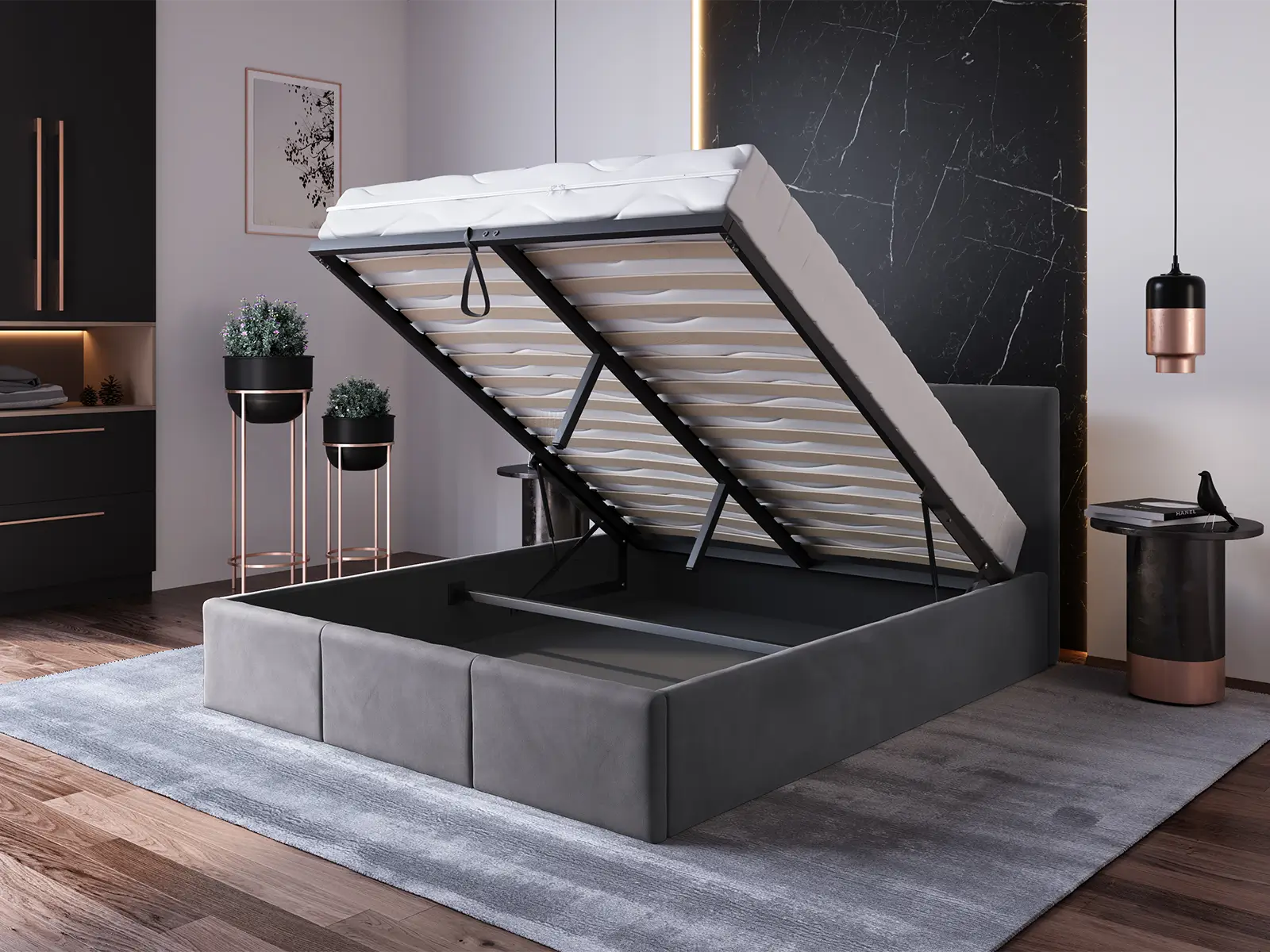 Łóżko tapicerowane z materacem i pojemnikiem 140x200 TOP line 7 Velvet Grafitowy