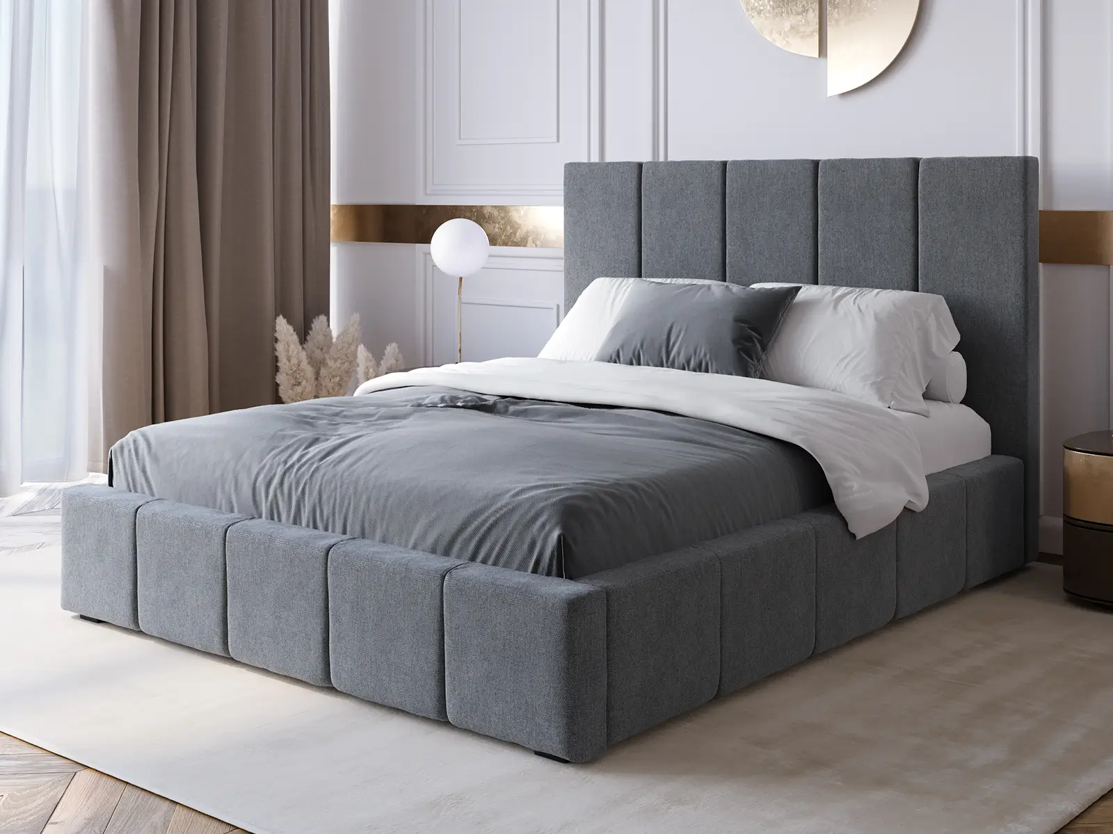 Pionowe przeszycia dodają łóżku unikalnego charakteru, tworząc efektowny mebel, który wyróżnia się w każdej aranżacji.