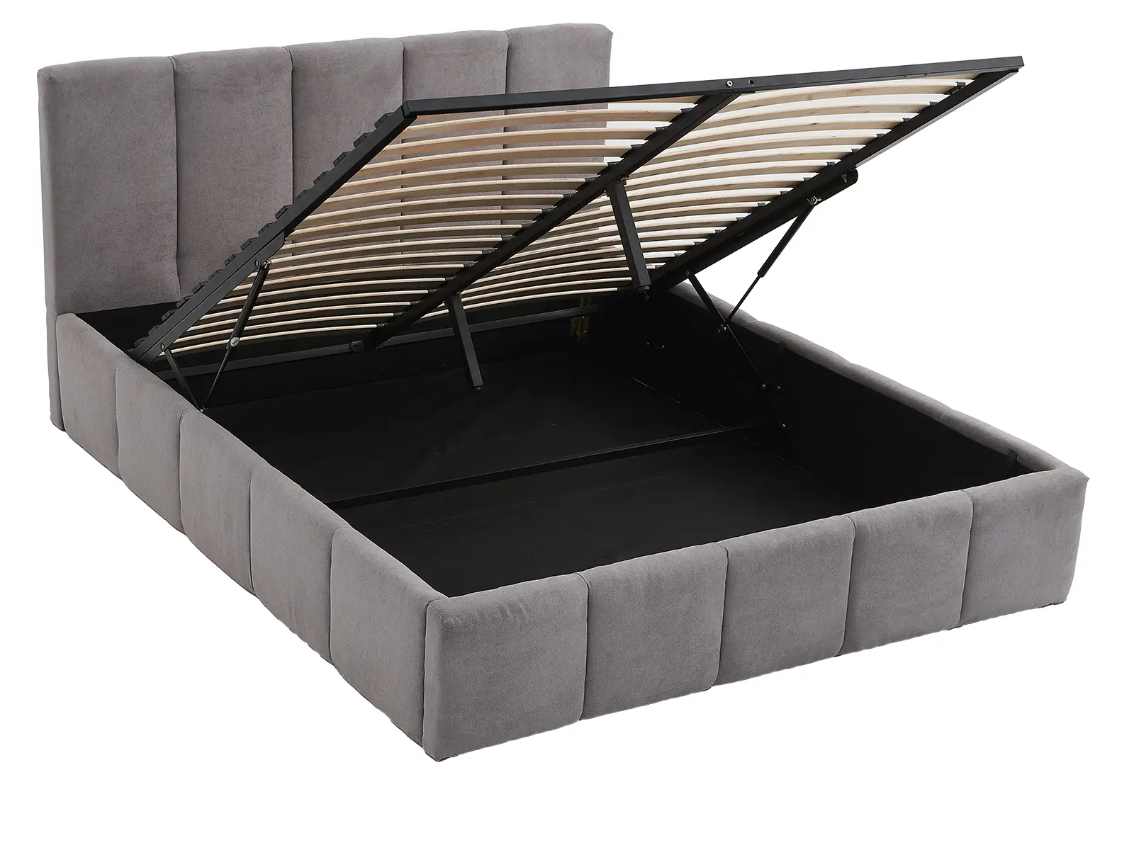 Wbudowany stelaż na podnośnikach gazowych o mocy 80 N z pojemnikiem na pościel sprawia, że utrzymanie porządku w sypialni staje się łatwe i efektywne.