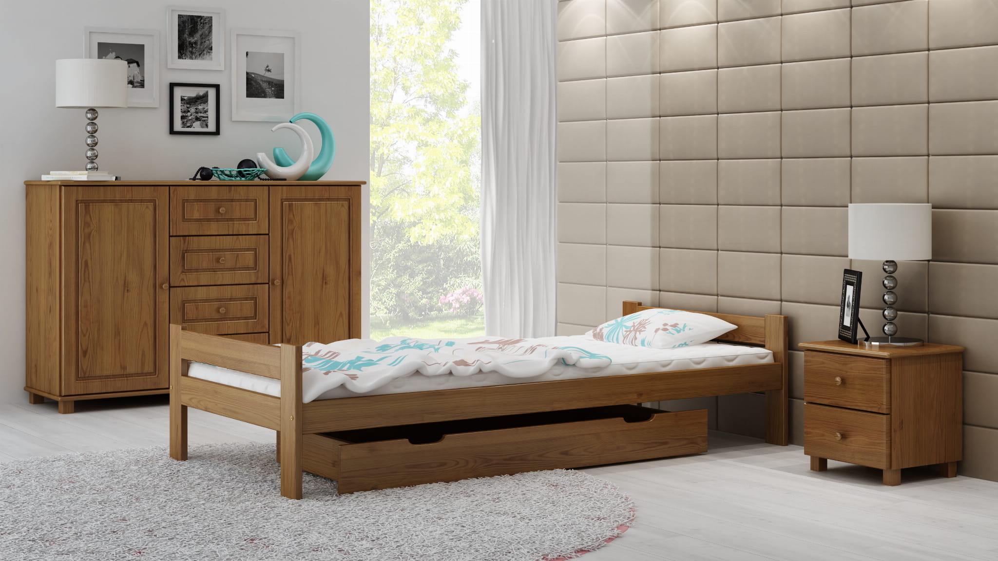 Zobacz opis produktu| Model PRIMA cechuje lekkość konstrukcji, materiał jakim jest naturalne drewno oraz bardzo atrakcyjna cena. Produkt wykonany jest w całości z drewna sosnowego i lakierowany ekologicznym lakierem, który spełnia nawet rygorystyczną normę lakierowania zabawek DIN EN 71-3. Połączenia zostały wykonane poprzez wykorzystanie stalowych śrub meblowych (system połączeń EURO). Gwarantuje to bardzo dużą stabilność i wytrzymałość produktu. Stelaż AGABO wykonany jest z 12 elastycznych listew brzozowych o szerokości 5,3 cm połączonych taśmą tapicerską. Mebel jest transportowany w częściach do samodzielnego montażu. Montaż jest intuicyjny, a w zestawie znajdują się wszystkie potrzebne śruby i instrukcja. |