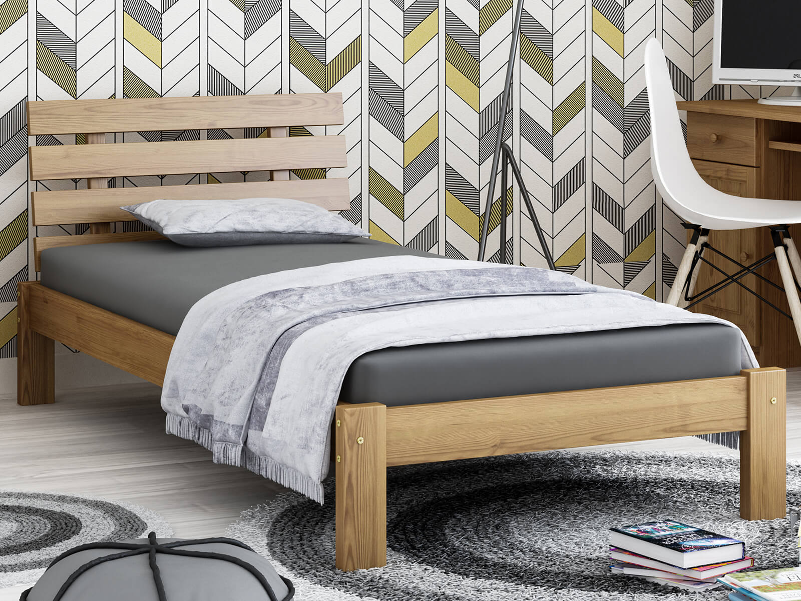 Zobacz opis produktu| Łóżko KLARA Łóżko Klara z litego drewna sosnowego to solidnie wykonany model, który wprowadzi do każdej sypialni elegancję. Produkt z wysokim zagłówkiem łatwo dopasuje się do każdego metrażu oraz dekoracji wnętrza. Stabilność zapewnia gruba noga z litego drewna. Zrównoważone kształty łóżka sosnowego podkreślą każdy wystrój oraz sprawią, że nie będzie można zastąpić go innym meblem. Łóżko do sypialni daje możliwość dopasowania jego zalet estetycznych do tych, które odpowiadają za komfortowe przebywanie na łóżku oraz do ogółu aranżacji sypialni pod względem kolorystyki. Kształt produktu odpowiada najpopularniejszym wymiarom wnętrza sypialni. Nasze łóżka drewniane łączone są za pomocą systemu skręcania. Całość konstrukcji łóżka do spania lakierowana jest ekologicznymi lakierami. Dostępne wszystkie rozmiary, zarówno jednoosobowe jak i dla dwojga.
