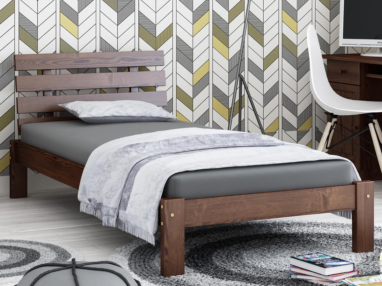 Zobacz opis produktu| Łóżko KLARA Łóżko Klara z litego drewna sosnowego to solidnie wykonany model, który wprowadzi do każdej sypialni elegancję. Produkt z wysokim zagłówkiem łatwo dopasuje się do każdego metrażu oraz dekoracji wnętrza. Stabilność zapewnia gruba noga z litego drewna. Zrównoważone kształty łóżka sosnowego podkreślą każdy wystrój oraz sprawią, że nie będzie można zastąpić go innym meblem. Łóżko do sypialni daje możliwość dopasowania jego zalet estetycznych do tych, które odpowiadają za komfortowe przebywanie na łóżku oraz do ogółu aranżacji sypialni pod względem kolorystyki. Kształt produktu odpowiada najpopularniejszym wymiarom wnętrza sypialni. Nasze łóżka drewniane łączone są za pomocą systemu skręcania. Całość konstrukcji łóżka do spania lakierowana jest ekologicznymi lakierami. Dostępne wszystkie rozmiary, zarówno jednoosobowe jak i dla dwojga.