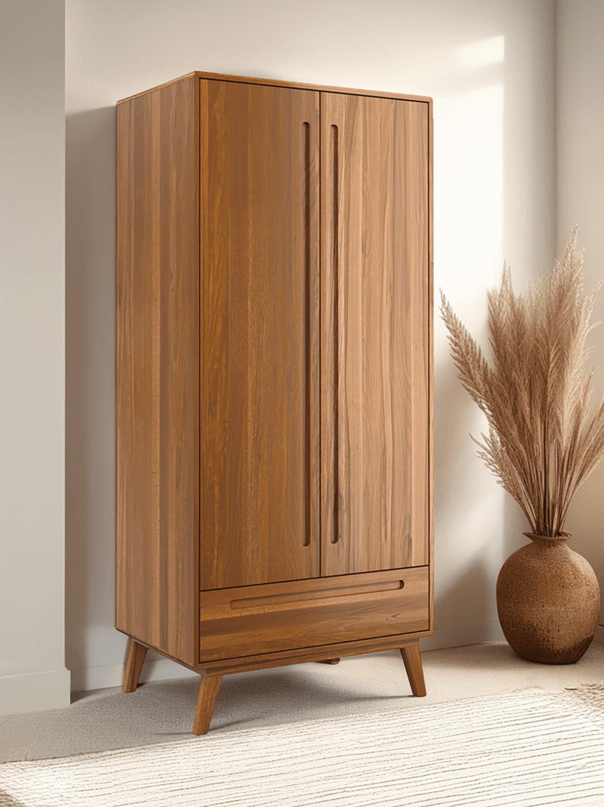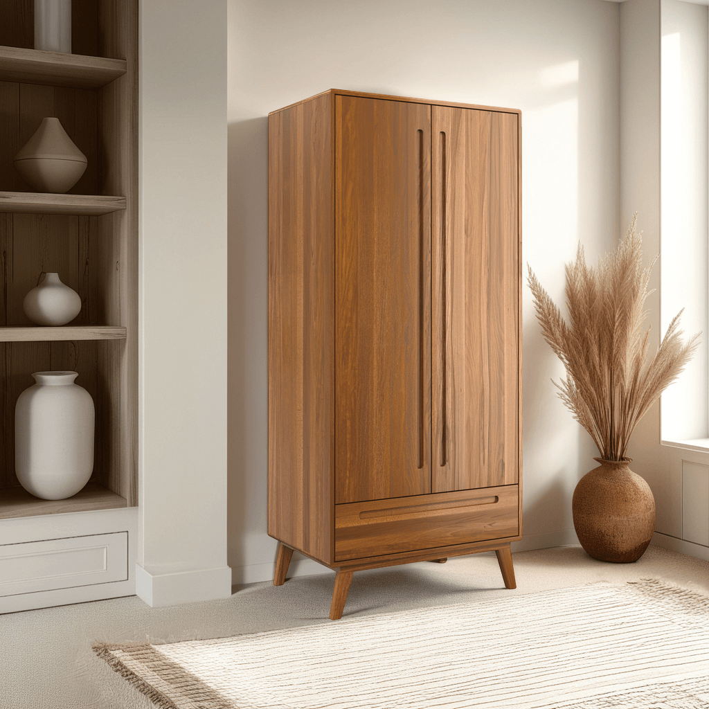 Masywna Konstrukcja z Bukowego Drewna - Konstrukcja tej szafy wykonana jest z litego drewna bukowego, co gwarantuje nie tylko trwałość, ale również naturalny urok. Dzięki temu mebel świetnie sprawdzi się przez wiele lat.