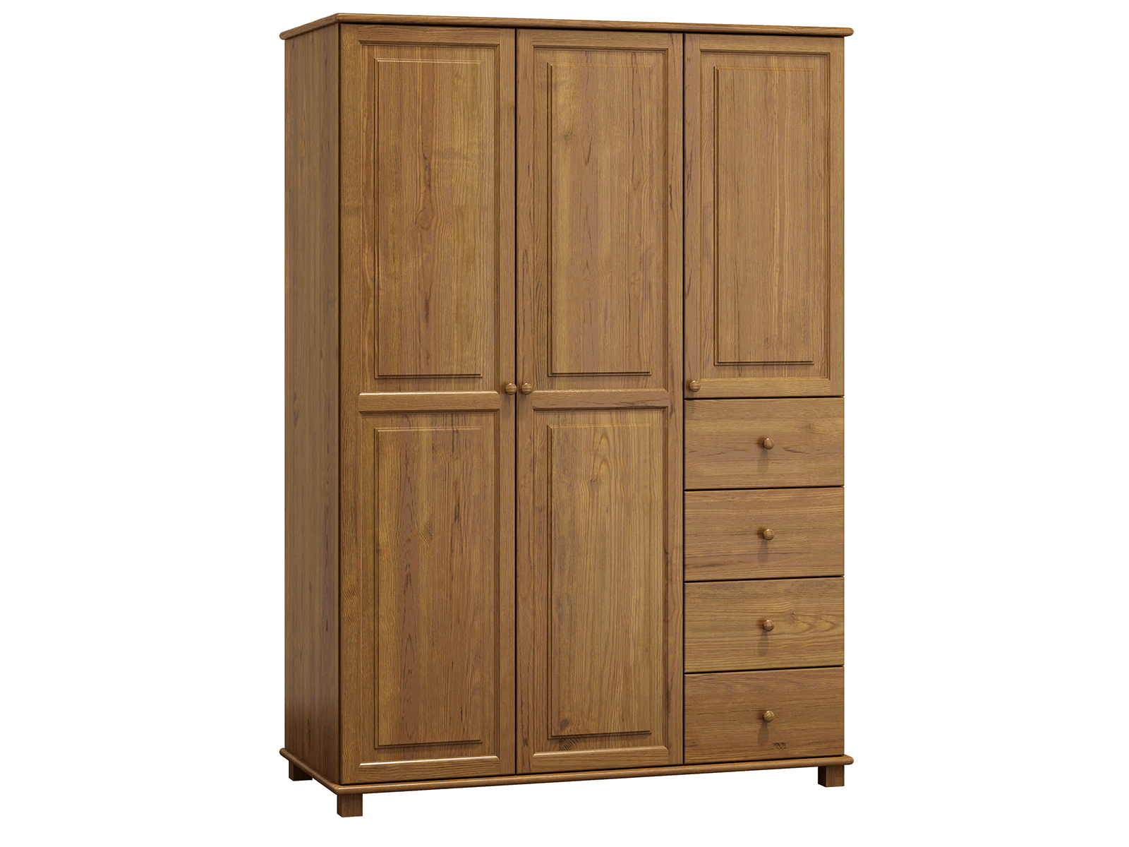 Zobacz opis produktu| Szafa 3Dnr4 S133 dzięki wykorzystaniu w procesie produkcyjnym materiałów z drewna sosnowego, posiada bardzo wytrzymałą i stabilną konstrukcję. Mebel wykonany jest poprzez wykorzystanie najlepszego gatunku drewna sosnowego i potrójne malowanie lakierami ekologicznymi. Jako nieliczni używamy do produkcji lakiery, posiadające atest Państwowego Zakładu Higieny. Produkt dostarczany jest w paczkach do samodzielnego montażu. |