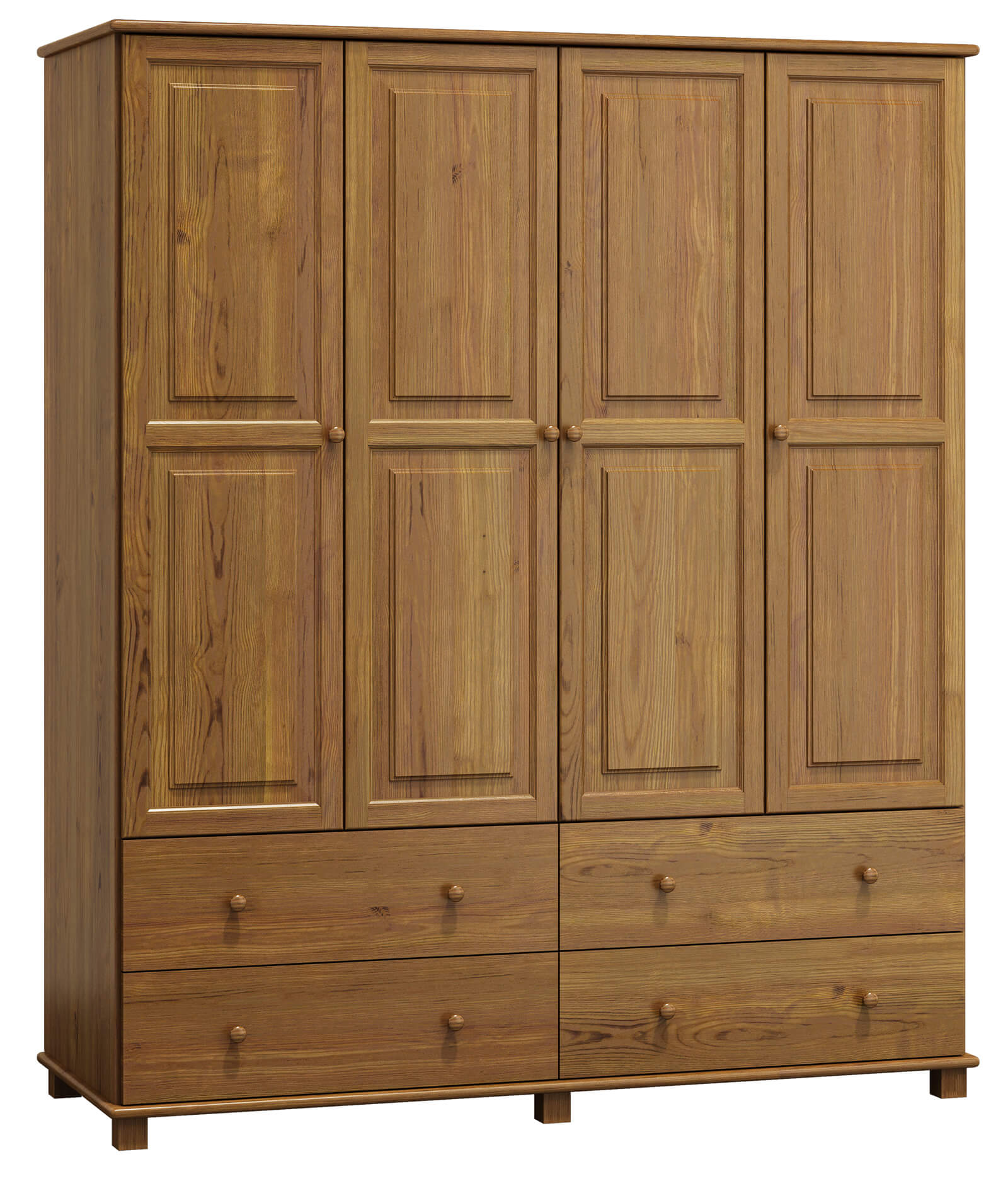 Zobacz opis produktu| Szafa 4Dnr6 S160 dzięki wykorzystaniu w procesie produkcyjnym materiałów z drewna sosnowego, posiada bardzo wytrzymałą i stabilną konstrukcję. Mebel wykonany jest poprzez wykorzystanie najlepszego gatunku drewna sosnowego i potrójne malowanie lakierami ekologicznymi. Jako nieliczni Produkt dostarczany jest w paczkach do samodzielnego montażu. |