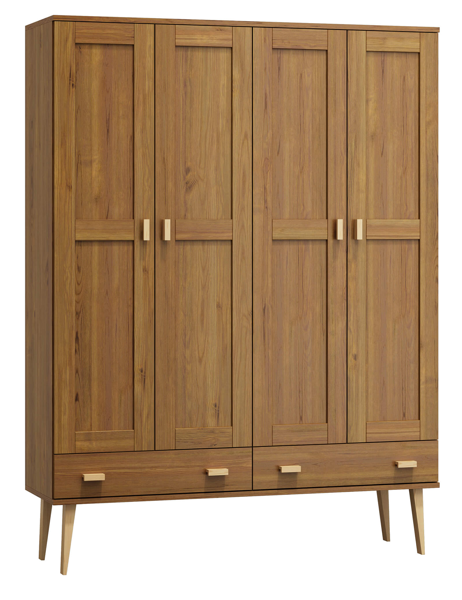 Zobacz opis produktuSzafa Venuci z funkcjonalnym wieszakiem oraz półką stanowi praktyczny, a zarazem niezwykle ciekawy stylistycznie element wystroju wnętrza. Wyróżnia się prostą, elegancką formą, precyzją wykonania oraz zastosowaniem najwyższej klasy surowców. Przestronne wnętrze umożliwi przechowywanie okryć wierzchnich, ubrań czy akcesoriów, a wysokie, stabilne nóżki pozwolą na łatwe porządkowanie przestrzeni pod meblem. Przedstawiamy czterodrzwiowy model o szerokości 155 cm, dostępny w kilku odcieniach - szarości, bieli, olchy, dębu, sosny oraz orzecha.