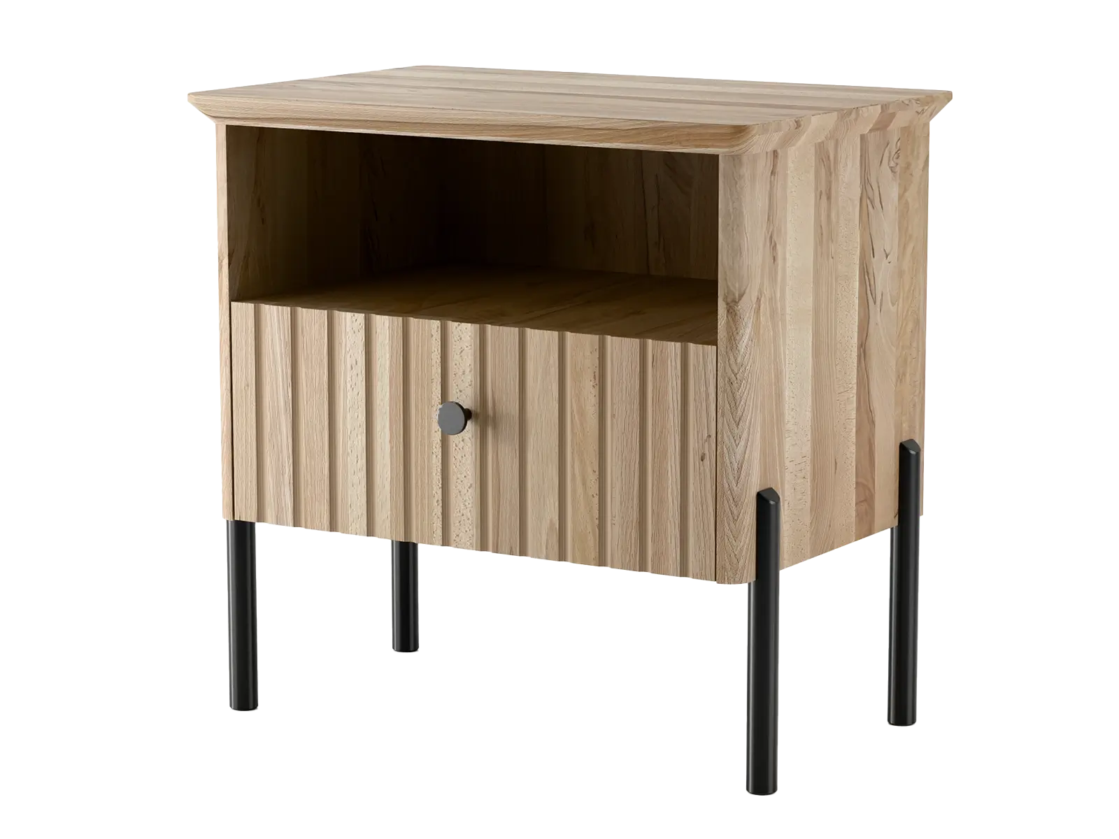 Zobacz opis produktuZanurz się w świecie doskonałego designu, gdzie funkcjonalność spotyka się z estetyką, a klasyczne drewno zyskuje nowoczesne oblicze. Szafka nocna bukowa z lamelami, osadzona na smukłych metalowych nogach, to mebel, który redefiniuje pojęcie elegancji w sypialnianym wnętrzu.