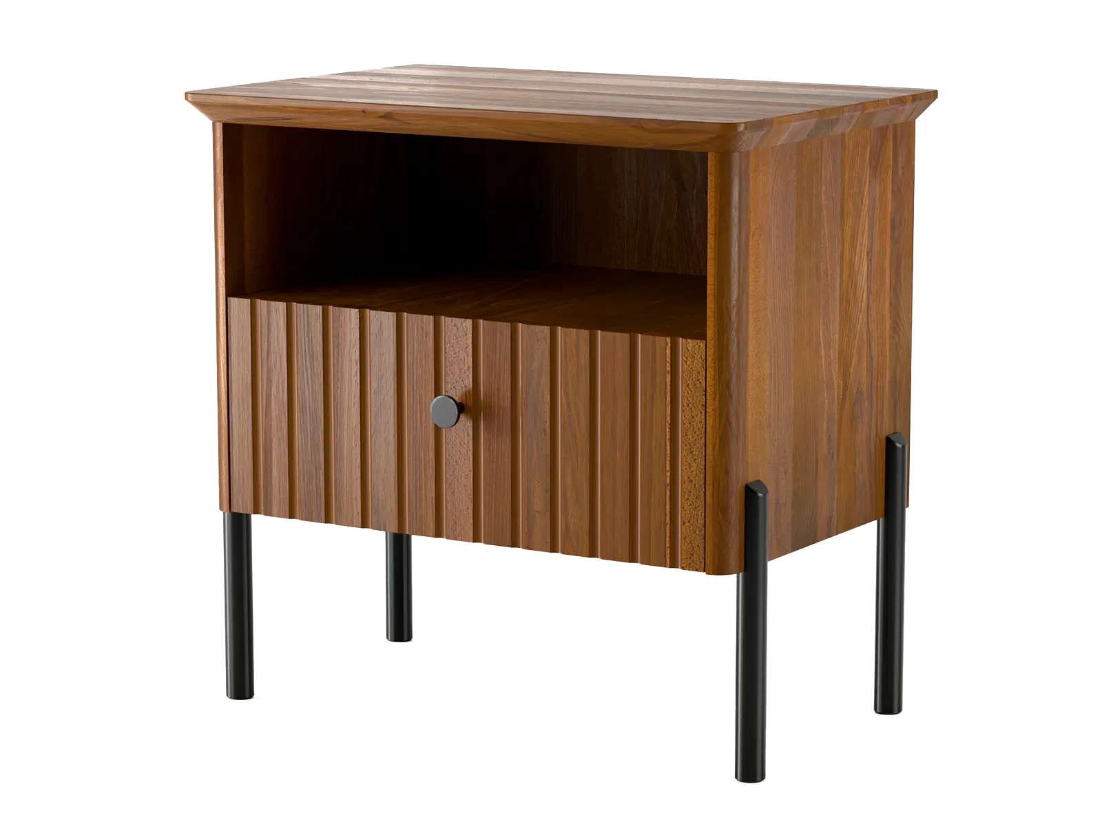 Zobacz opis produktuZanurz się w świecie doskonałego designu, gdzie funkcjonalność spotyka się z estetyką, a klasyczne drewno zyskuje nowoczesne oblicze. Szafka nocna bukowa z lamelami, osadzona na smukłych metalowych nogach, to mebel, który redefiniuje pojęcie elegancji w sypialnianym wnętrzu.