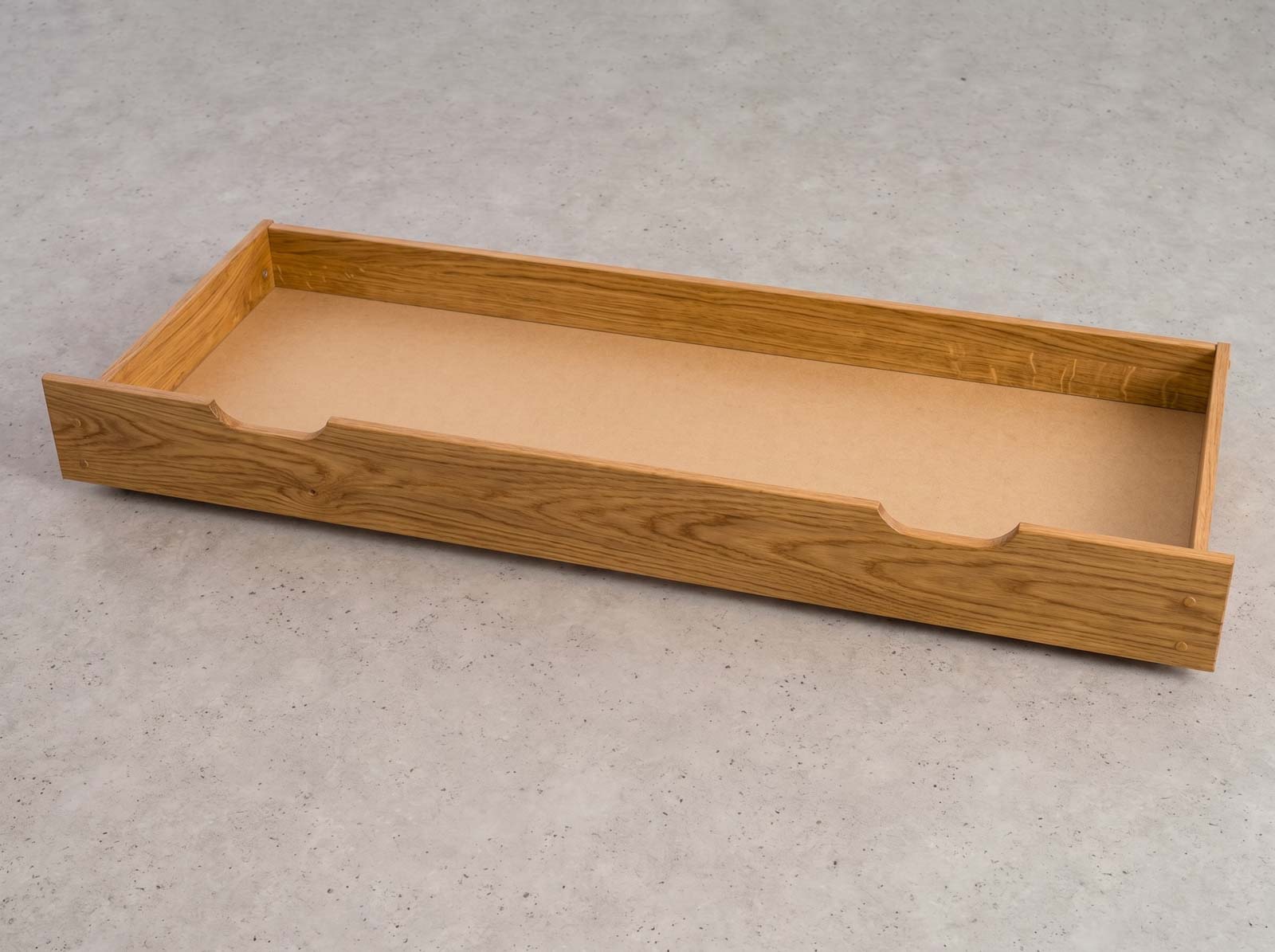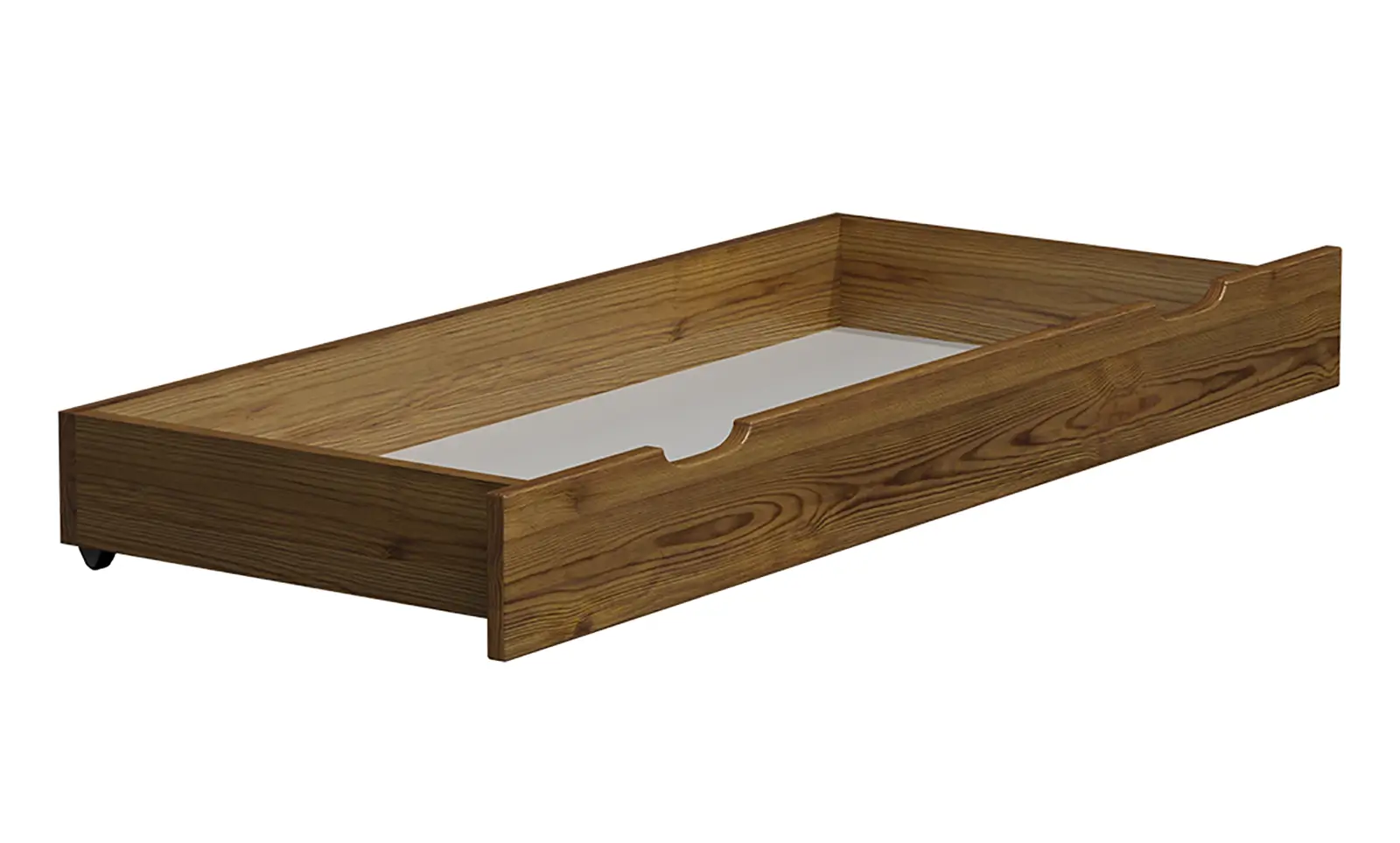 Szuflada została potrójnie pomalowana lakierami na bazie ekologicznych składników, co zapewnia jej powierzchni doskonałą ochronę przed uszkodzeniami, zarysowaniami oraz wpływem wilgoci. Użyte lakiery są całkowicie bezpieczne dla zdrowia ludzi, dzięki czemu produkt ten doskonale sprawdzi się w pokojach dziecięcych, sypialniach czy innych przestrzeniach, gdzie bezpieczeństwo i jakość są priorytetem. Funkcjonalność szuflady zwiększają solidnie wykonane kółka, które umożliwiają jej swobodne przesuwanie bez wysiłku. To praktyczne rozwiązanie pozwala na wygodne przechowywanie różnych przedmiotów – od pościeli i ubrań po zabawki czy dokumenty.